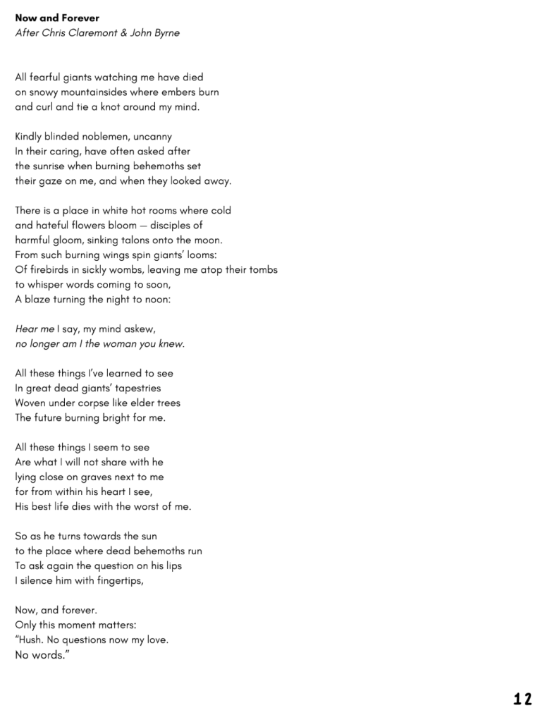 First up is “Now and Forever”, my homage to Chris Claremont and John Byrne’s Seminal “The Phoenix Saga”