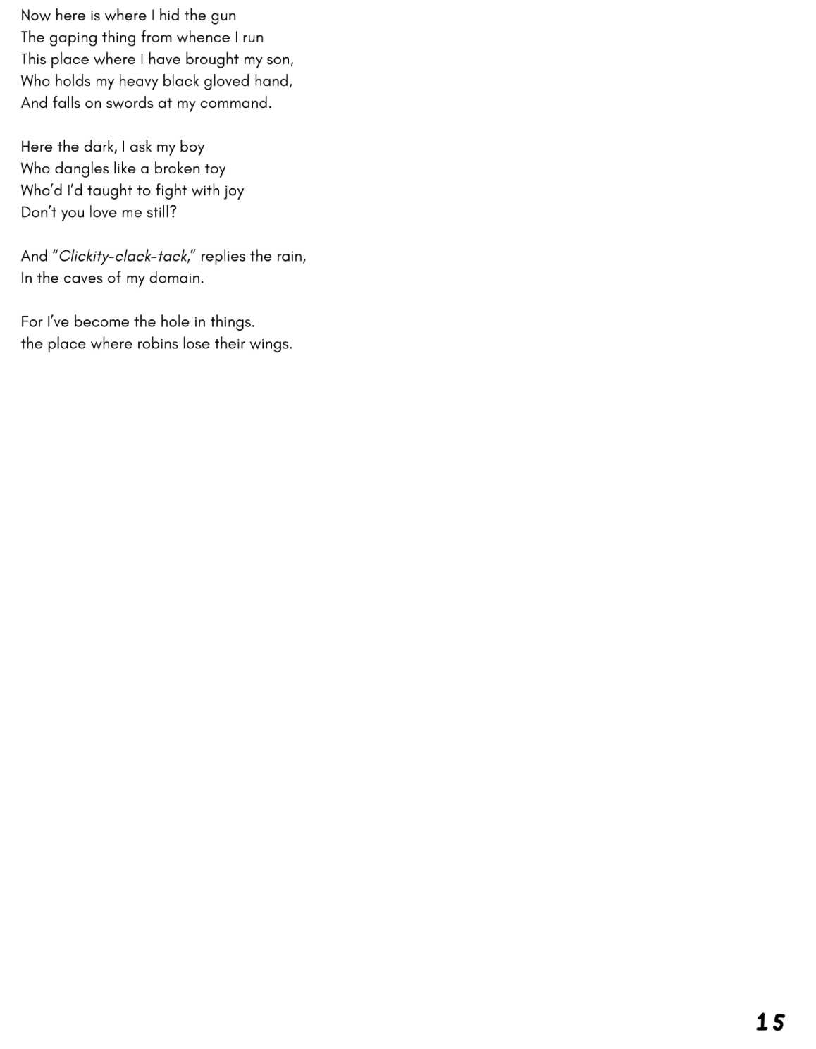 Next, a poem I really struggled with, “Yes Father, I Shall Become”, my attempt to pay homage to Grant Morrison’s time on Batman — focusing on Bruce and Damian. Morrison is a huge influence on me, so this was a big struggle, but I’m really proud of it.
